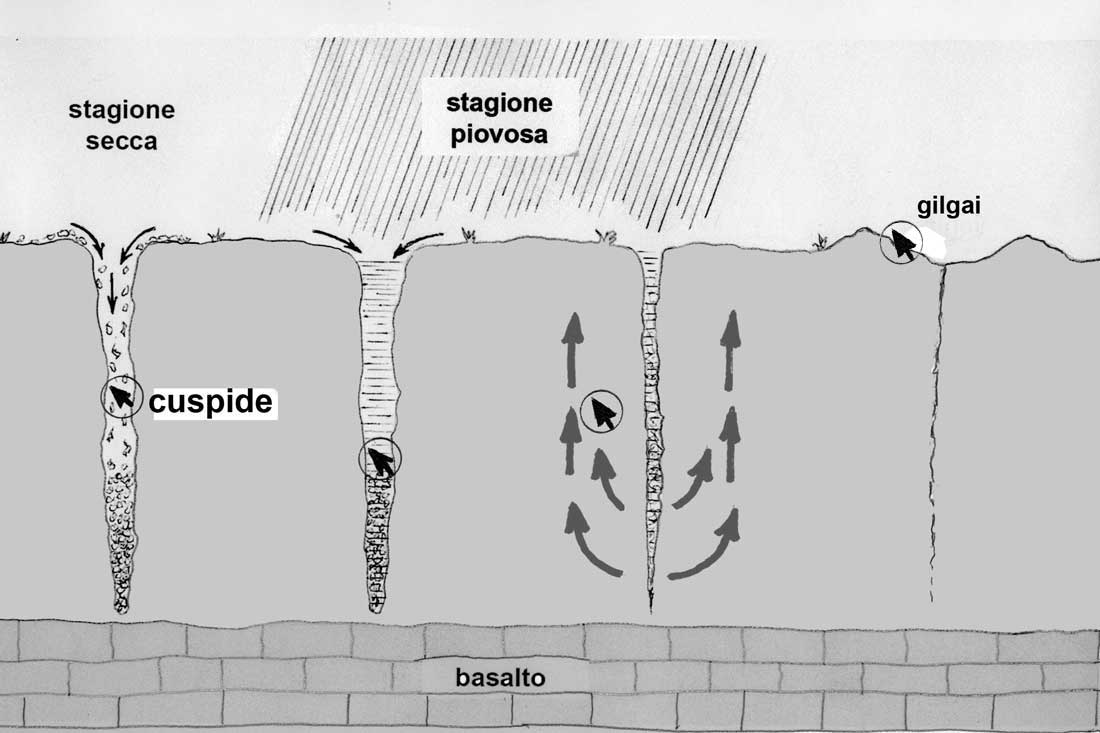1. Cuspide di freccia peduncolata neolitica in quarzo calcedonio traslucido (corniola) trovata a 60 cm di profondità in vertisuolo nella valle del Beles (km 120 a O-SO del lago Tana, Etiopia). I vertisuoli (dal latino vertere) rappresentano una numerosa tipologia di terreni caratterizzati: - da elevata percentuale della frazione argillosa poco infiltrabile all’acqua, - dalla loro ubicazione in ambienti caldi, - dalla variazione periodica del loro contenuto idrico in conseguenza della stagionalità delle piogge. Le contrazioni del suolo conseguenti alla sua disidratazione nei periodi secchi determinano la formazione di profonde crepacciature entro le quali cadono materiali terrosi (e altro; nel caso specifico, il manufatto preistorico) provenienti dalla superficie. Con l’arrivo della stagione piovosa, l’acqua di ruscellamento si invasa nelle crepacciature favorendo l’inumidimento ed il rigonfiamento del suolo partendo dal basso. Il conseguente aumento di volume, non potendosi esercitare verso il più compatto sottosuolo (basaltico, nel caso in questione), spinge verso l’alto gli strati più profondi determinando il rimescolamento del profilo e la formazione in superficie di piccoli rilievi chiamati gilgai.